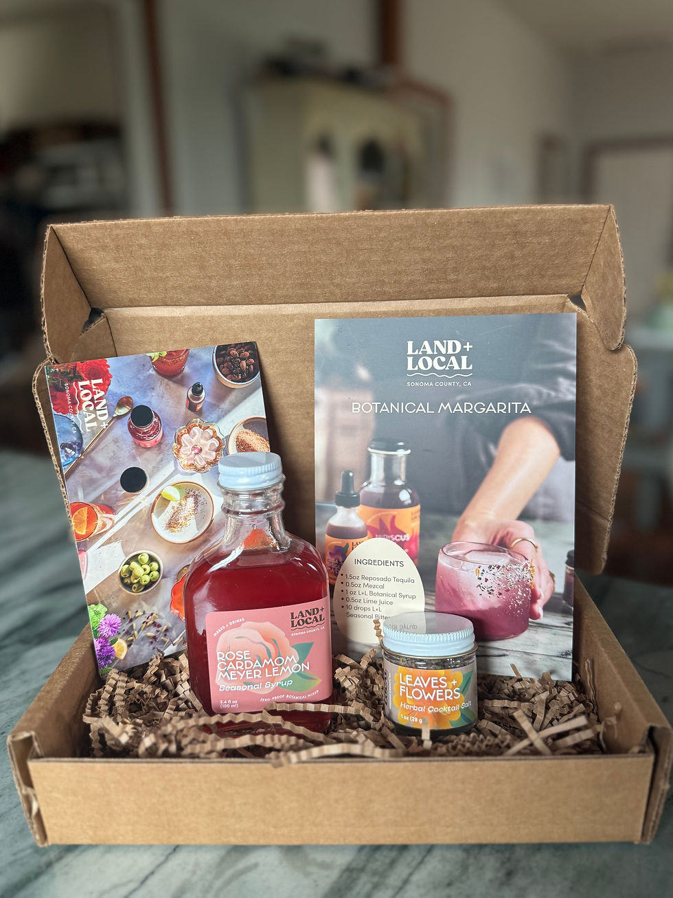 Leaves + Flowers HERBAL COCKTAIL SALT 2 oz - Cooling Atlantic grey salt is mixed in with dried tulsi, calendula petals, organic schisandra berry powder, and organic rose petals to beautify all your spirited and spirit-free cocktails while sneaking in a bit of liver detoxifying plant power.